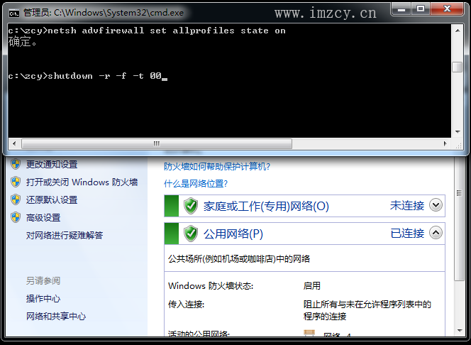 :: description: test stop firewall. :: author: zcy :: date: 2018-09-29 :: site: https://www.imzcy.cn netsh advfirewall set allprofiles state off |