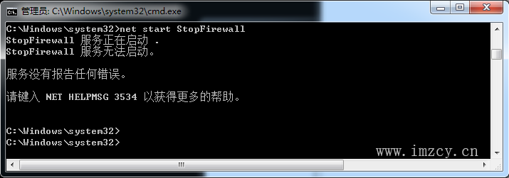 C:\Windows\system32>cd c:\zcy c:\zcy>instsrv.exe StopFirewall c:\zcy\srvany.exe |