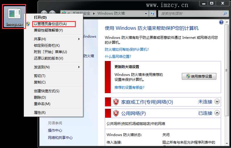 2.5、找到我们转换好的exe程序,测试右键以管理员身份运行能正常关闭windows防火墙