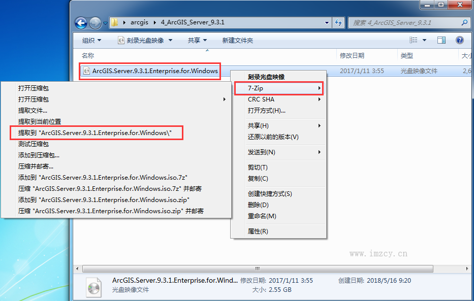 1.1、进入arcgis的安装目录下的[4_ArcGIS_Server_9.3.1]文件夹,提取里面名为ArcGIS.Server.9.3.1.Enterprise.for.Windows.iso的iso文件。