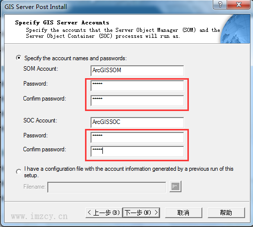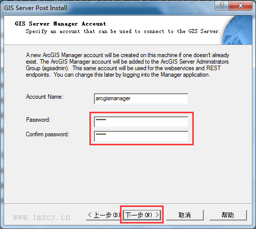 1.8、配置GIS服务管理账户,也都使用默认账号即可。