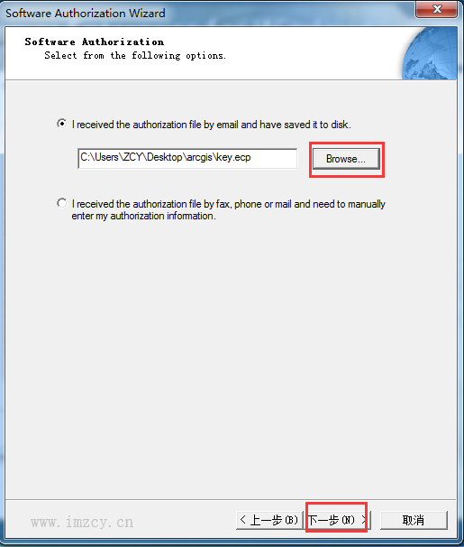1.14、点击Browse找到arcgis安装目录中的key.ecp文件,然后下一步,下一步至安装完成点击Finish关闭安装窗口即可