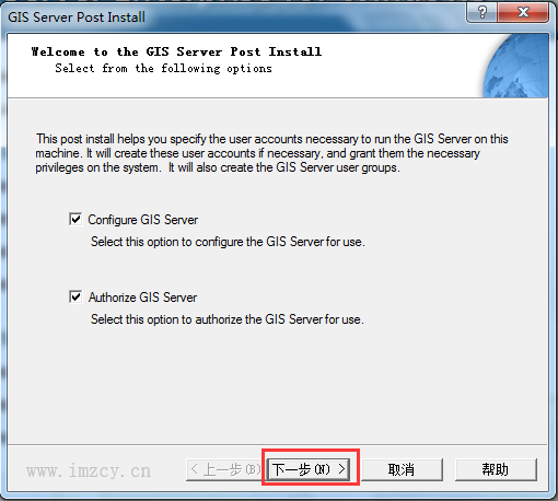 1.6、默认勾选配置Configure GIS Server 和 Authorize GIS Server配,点击下一步