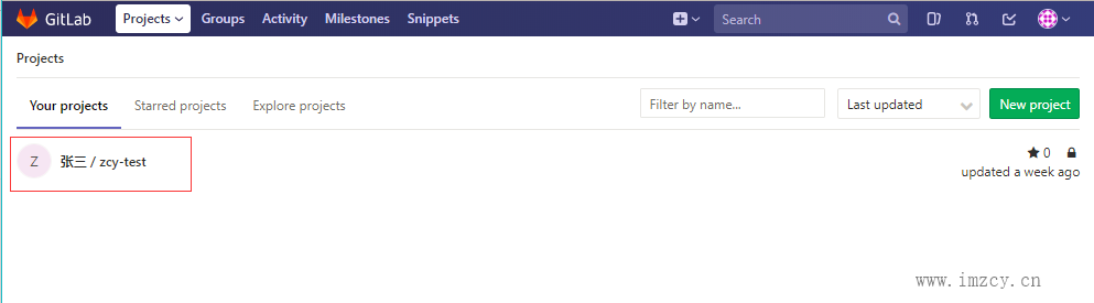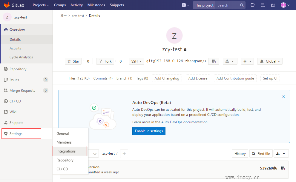 3.1、浏览器登录gitlab,然后进入要自动构建的项目