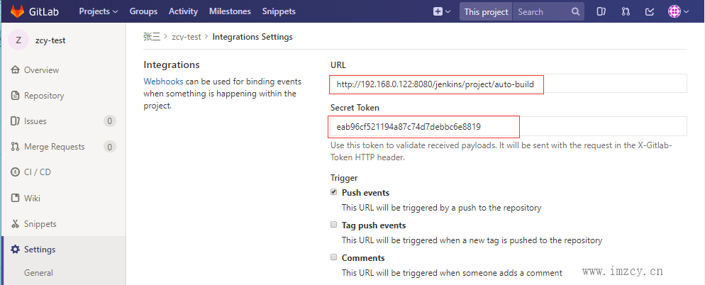 1、jenkins和gitlab已经都安装完毕 2、jenkins能连接到gitlab获取项目代码并能手动构建项目 3、jenkins和gitlab能互相访问的到(gitlab要能连接到jenkins,都在私网或则都在公网,或则把对应地址透传出去) 4、具体可参考前几篇文章 |