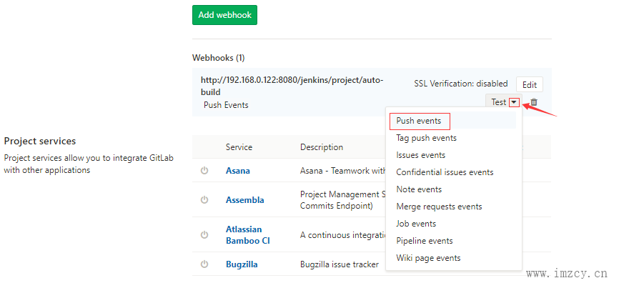 3、GitLab上面配置WebHook并验证自动构建