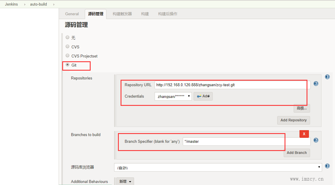 2.3、在源码管理中,输入要构建的gitlab项目及对应的分支