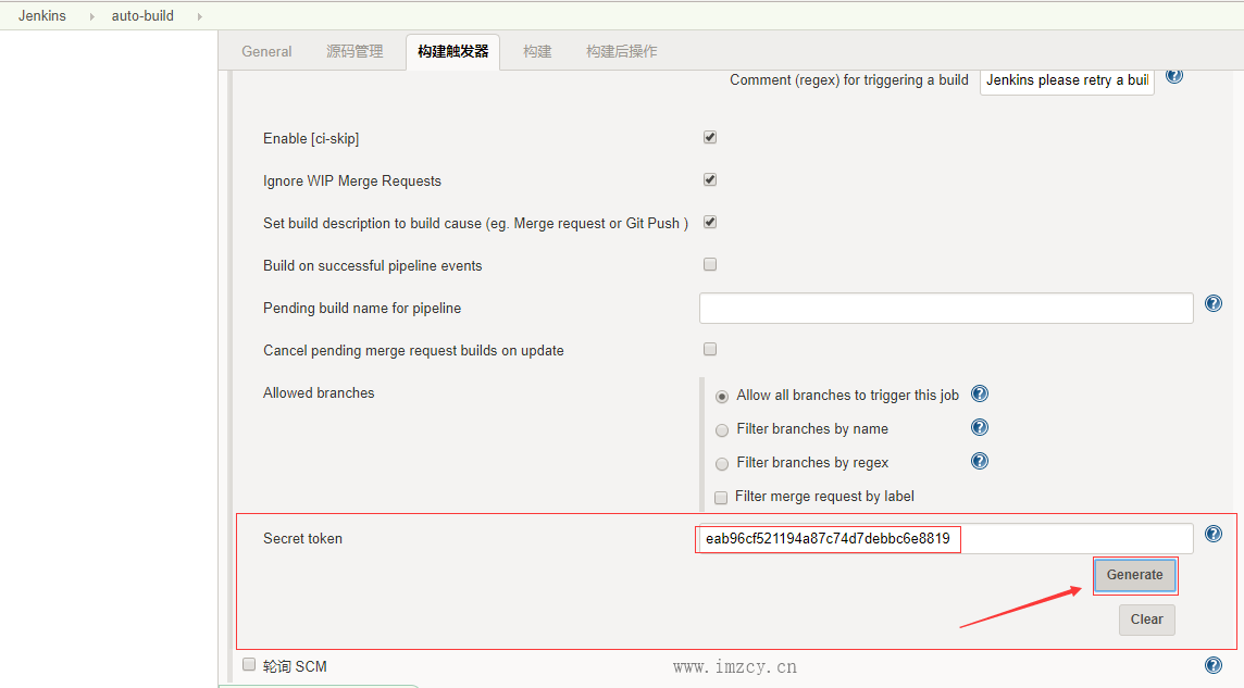 然后点击右下角的[高级]选项,下拉找到Secret token,然后点击Generate生成一个令牌(记得复制下,等下也要用到)